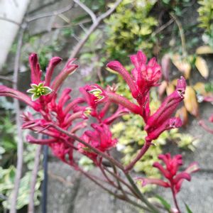 どこがお花? やはり赤い部分全体がお花かな。 パチリ 近くの名札に「ヒゴロモコンロンカ(緋衣崑崙花)」とありました。 Netで調べると、垂れ下がった赤い部分は葉のようです。