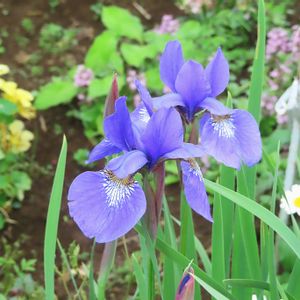 背丈の低い文目が咲いていました。 パチリ Googleレンズで調べたところ「コアヤメ」のようです。