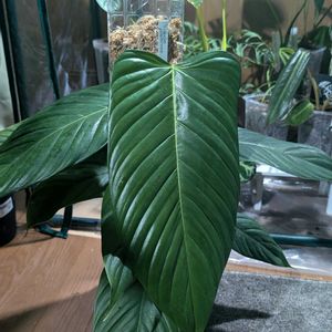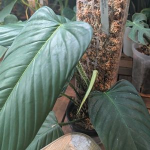 フィロデンドロン・ジェネヴィビアナムが恐らくモスポールないと暴れるタイプだと思ったので、モスポールを付けて見ました😁 エスメラルデンセと葉波変わらないかと思ったけど、光に当てると綺麗な事にきずいた😳