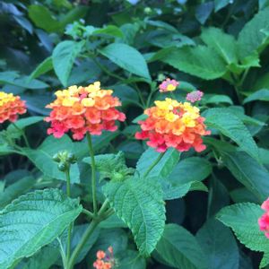 ランタナ 花びらの色が、下の赤から上の黄に向かって徐々に変色している花🤔 良く出来てる😊