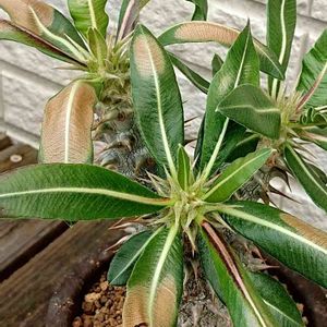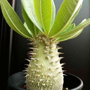 こんばんは〜😆 1週間お疲れ様でした〜\(*`∀´*)/ 眠い〜😴 まだ寝たくない〜😤 せっかくの夜更かしタイムなのに なのに ね、眠い…(⊃ωー`).。oOアワアワ ...Zzz........ パキポディウム ホロンベンセ❣️ わさわさ葉っぱ生えすぎ〜ꉂꉂ(ᵔᗜᵔ*)笑 可愛いとげとげの塊根がよく見えないな😅 今日はいい感じに雨にうたれたようなので、ツヤツヤのピカピカです(。・о・。)♡!