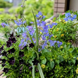モニター 🍋🟩ペチュニア ライム🍋🟩 5月4日 2ポットをそれぞれ1ポットずつ♪♪ 二つの寄せ植えにしました〜(*^^)v ♪ライム🍋🟩のイメージ♪ 爽やか〜🍃 清涼感⋆.˚⊹⁺…˖⁺✧ そんな感じで、まず一つは、水色+薄紫色系で🎶 〈寄せた苗のメンバー紹介✨🎶〉 ✼八重咲きペチュニア パニエ ~ラベンダー~ 品種名:ペチュドレラベンダー 淡〜い紫系の花色です♡ ✼ペチュニア テヌート♪⋆*♪⋆* これ、今回のモニターのもう一色の方なんです!😄 実は応募する時、どちらにするか迷ったんですね🤔 たまたま、行ったお店に並んでいて🤩 黒に近い深〜い紫色がすっごく良くてお迎えしてしまいました🥳 この花色✨お薦めです🥰 ✼ロベリア 空色てふてふ 青空ブルー めっちゃ綺麗なブルーです💙✨ 何度も、リビングのレースのカーテンを開けて見て、癒やされてます(*^^*)💕 ✼二季咲 長崎ラベンダー リトルマミー イングリッシュラベンダー💜 涼しい風が吹く雰囲気𓂃 🌿𓈒𓏸 を期待して寄せましたが🤭 さぁ、どんな感じになるでしょ〜(*´ᵕ`*)੭˒˒♬タノシミ~~~♡