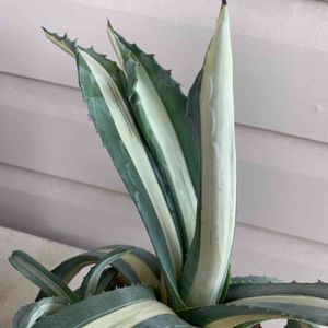 華厳なんていう渋い名前だけど 確かにシューっと1本 華厳の滝みたいな白いラインが 綺麗に入ってて ブルーがかった葉っぱに映える。 数あるアガベの中でも かなりモダンな気がします。