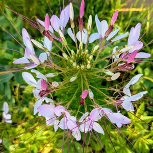 お早うございます。 6/28に予告していたクレオメの追っかけ投稿です。 彩りも良くて美しく成ってる気がしました。 もっと沢山咲いて〜😊🩷🤍💚