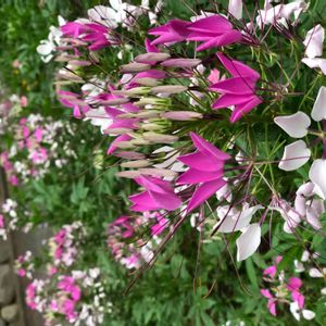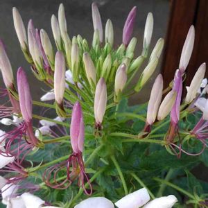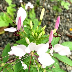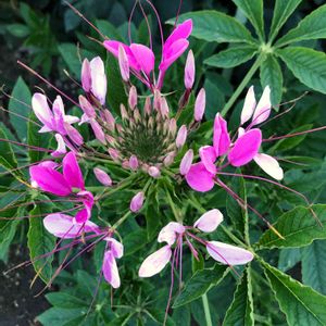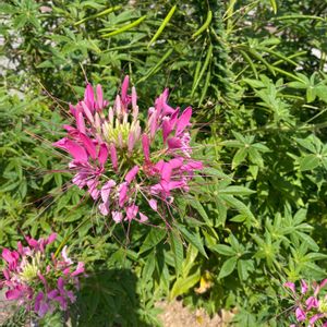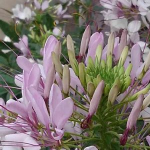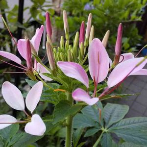 朝のクレオメ ピンク色が見えてきまし た💕 明日から少しずつ蝶が舞い始めますか?