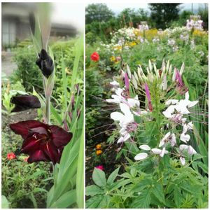 ←グラジオラス🌼 いい色😍 →家の人はジョロウバナと言われたけど・・違うような😑 夕方綺麗なピンク💕になるそうです(^з^)-☆ →クレオメ(風蝶草)と教えて頂きました😳