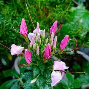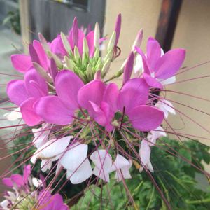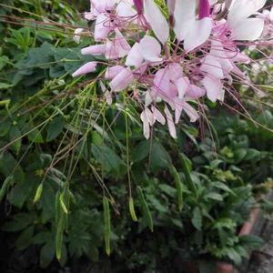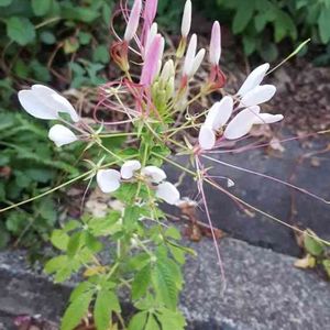 庭のコンクリートから咲いてた! 少し離れて咲いてるクレオメの種がここまで飛んで来たのかな?!