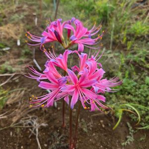 ナツズイセン? ネリネ? AIがハッキリ答えてくれません🤨 「リコリス ジャクソニアナ」と教えていただきました。 ありがとうございました😊