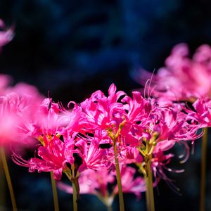 リコリス ジャクソニアナ 濃い桃花で、先端に色づく青色が美しい