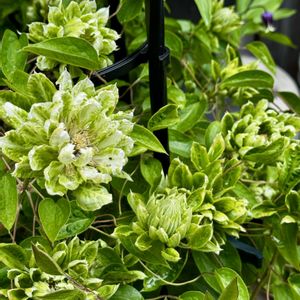 こんにちは クレマチス達開花してきました♪ ①グリーンパッション 大好きなグリーンのクレマチス 花付き抜群💚 ここからクレマチス沼が始まりました🤭 ②天心 ファースト木立性 誘引が無いし、✂️も考え無いで済むので楽ちん。 咲き進み花弁がクルクルに💕 ③雫 木立性 鮮やかな紫で小輪の花 蕾が沢山で楽しみ ④水面の妖精 アンニュイで妖艶な花が開花しました👏 ⑤あわい たぶん開花してると思う😅