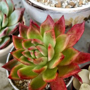 1つ前の写真の寄せ植えを反対側から撮ってみました。 手前の花の相府連がすごく好き♡もっと赤くなるのかなぁ(*´艸`*)