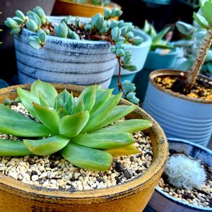初めてネットで土に植えてある子を購入…! GSの先輩に教えて頂いたお店、ハニーミントさん 斑入りのグリーンネックレスやつぶつぶセダムなど。どの子もとっても綺麗で良い苗ばかりでした😊 可愛い陶器鉢や土も購入💕 そんな時にマンションのエレベーター故障 6階まで運んでくれた方には申し訳なかった…😱 マンション修繕ももうすぐ終わり。 今日聞いたらベランダに色々出して良いと🙌