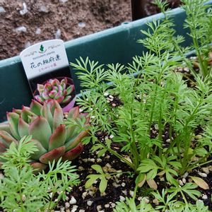 リメ鉢塗ってやっと植え替えました(*´∇`) 花の相府連は子株を外して植えました💠🤗 デレッセーナ大きくなって花芽が伸びて来てます🌿💠🤗