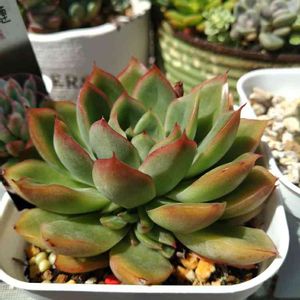 HCで購入した花の相府連 まだまだ多肉の種類に詳しくない私はいつも見た目で可愛い子を選ぶからHCの室内にいる子パッカーンとしてる子は一目惚れってのはなかなかなくていつもその場で調べてます☺️ 検索したらとても可愛いかったので綺麗になってくれることを願って購入😊 徐々にぎゅっと締まって真っ赤に染まりとても可愛いくなってくれました💕 最初から可愛いのもいいけど残念多肉が日に日に変化していくのを見るのも楽しい٩(ˊᗜˋ*)و