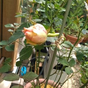 こんにちは~ 今日は蒸し暑いですね😳 ちょっとガーデニングしただけ なのに汗が止まりません~💦 ←3年目の黒葉ダリア カクテルアミーゴが咲きました♪ →名前不明の薔薇さんが可愛い~💖