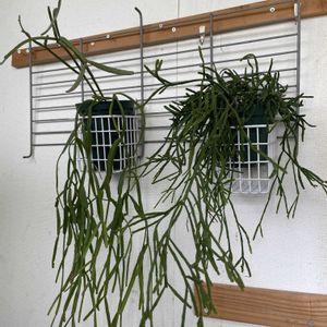 リプさんが伸びて置き場所,植え替え面倒で吊り鉢にと思い約半年! 百均のネットに掛けるカゴ,ピッタリ‼️一件落着👍 二枚目 タイコンと謎モン様どこまで仲がいいのか?示し合わせたように同じ方向向いている💃