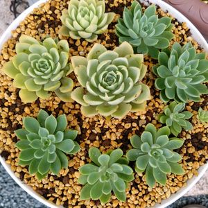 こんばんは😄 今日は朝は曇り空でしたが暖かくて久しぶりに寒くなかった朝でした😊 お昼前くらいからお日様出て湿度もプラスで少し蒸し暑かったです☀️ 今日は出かける用事がなかったので久しぶりに数時間多肉ごとできました🙌 多肉ごとしてる時が1番楽しいわ😆 身体的にはキツいけど😂 リナクィーン、紅葉はまだまだ残ってるけど花芽が邪魔🤣 ルブラ、こちらも花芽が出てるけどそれ程形が乱れてないから助かります👍 銀天女、相変わらず今年も花芽だらけで🤣 今年は使わないのでもう少し伸びたらカットしよう😃 姫秋麗丼、大きな丼だったけど株元にある子達が育たないから大きな子達をカットしまくりました✂️ いくつカットできるか数えながらしてたら300はありました😂 恐るべし姫秋麗🤣 カットした頭達をまた挿しまくり新しく丼が4鉢できました🙌 姫秋麗は強くて可愛いからとっても大好きなのでいっぱい増やしてます🥰 しっかりお日様当ててあげたら葉がポロポロ取れにくくなりますよ〜😉