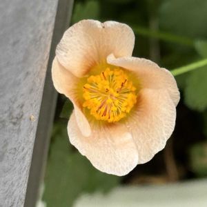 マルバストラム 淡〜いオレンジ色のお花🧡🤍 ̖́- 丸い花びらが可愛らしいです💗 つる性で色々な方向に広がってます とても優しくてほっ☺️とします