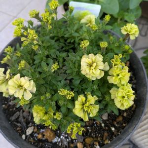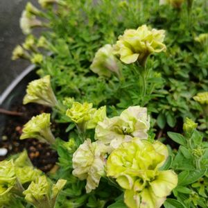 ペチュニアライムモニター 植えつけから11日 色変して心配しましたが またみどり色の花が咲きました 失敗したのかとドキドキしました よかった‼️