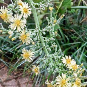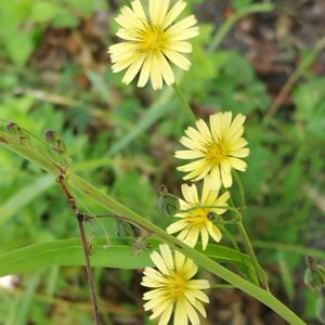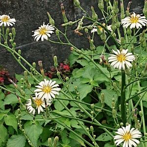 11.12 今日のお花… ☆ 写真は当日辺りに投稿した画像でスミマセンm(_ _)m アキノノゲシ キク科 アキノノゲシ属の一年草または二年草 和名は春に咲くノゲシに似て秋に咲くことから付けられた。 乳草、ウマゴヤシ、ウサギグサなどの別名がある 学名 Lactuca indica 高さ 50〜200㌢ 大柄だが柔らかく全体につやが無くはじめは根出葉をロゼット状に出すが、やがて茎をたて花序を出す 花期は8〜12月花は淡い黄色直径2㌢ほどで舌状花だけで出来ている。種子はタンポポの綿毛を小さくしたような形をしている。 レタスと同じアキノノゲシ属で、茎や葉を切ると白い液(乳液)が出ることから乳草の別名がある ︿分布 東南アジア原産で日本全土・朝鮮・中国・台湾・東南アジアに分布。稲作と共に日本へ渡って来た史前帰化植物。 日当たりの良い場所に生える。 ▷出典:ウィキペディアに拠る ①②③④9.15近くの里山の山裾で出会ったアキノノゲシ… 葛の繁茂する端っこで元気イッパイに咲いていました ⑤10月末だったかしら? 上越へドライブした時の道端で出会ったアキノノゲシ… 時折☔の暗い道端でしたが、お天気の良い日葉きっと気持ちよくお日様から暖かな耀を頂けそうでした アチコチで目に入るのですが、タイミングが合わないと撮せなくてこの淡い黄色の様々な色合いを撮せていません(・・; 次こそは…と行ってみると刈取り済み(-_-;) まあ私も庭では咲いたと気が付いたら抜いてサヨナラしていますから仕方無いなぁ… では… 今日も1日無理せず頑張りましょう🖐️🧚✌️😀 ✾花言葉✾ 幸せな旅 控えめな人 謙虚 本当は心優しい