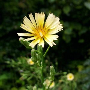 11月12日 今日のお花 🌿💛🌿アキノノゲシ🌿💛🌿 花期 8〜11月 生育地 草地、空き地、道端、公園、路線際 分布 北海道〜沖縄 草丈 60〜200cm 漢字名 秋の野芥子 秋の野罌粟 別名 チチクサ、ウサギグサ 花は舌状花のみ集まり、淡い黄色で独特の色合い。茎の下部の葉は切れ込みの深いものやないものもある。茎や葉を切ると白い乳液が出る。この白い液はラクチュコピクリンと呼ばれる苦味物質で、なめると苦い。草丈が高く大きなものは2mほどに、この花色で遠目にも気がつく。花は日中に開き、夕方に閉じるが、曇りの日や雨の日には開かない。葉が細くて切れ込みのないものをホソバアキノノゲシという。野菜のレタスも同じ仲間です。