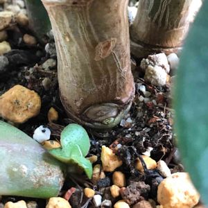🎶落ちた葉から🌱と根本からも小さな芽が出てきてました🎶 🍃金のなる木シンシン🍃