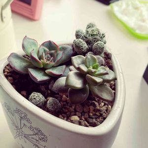 おはようございます☂️ 昨日は一日中ぐずついた天候でした☂️☁️霧雨が降ったり止んだりでなんとか雨に濡れずにお散歩🦮には行く事ができました🐾今日も朝から雨☂️ですが回復する予報なのでお散歩には行けそうです🎶🦮🐾 今日のpicはサボテン🌵丼 オプンチアとハツヒノデの子株がグングン伸びてきてました✨ こんな植え方ダメかなと思ってましたが植物は強いですね😉💕