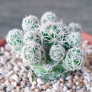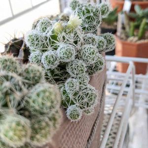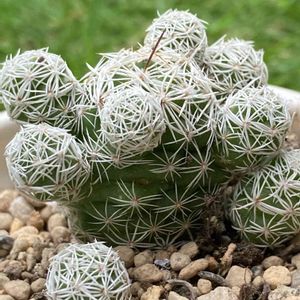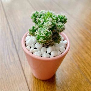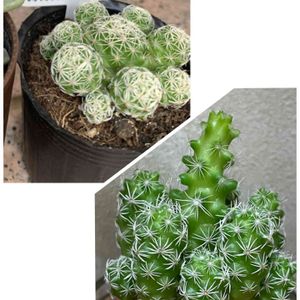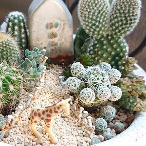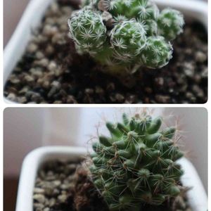 サボテンくんトリオ🌵🌵🌵+ one🌵 4/15upのDAISOサボテンくんたち🌵 まぁるく元気な金盛丸(キンセイマル)と 棘の痛くない銀手毬(ギンテマリ)。 遅れて迎えたミニの子はマミラリア トルカ これもほぼ棘がなく頭頂部には白いホワホワが💚 みんな順調に成長してくれて…嬉しい限り😄💞 トリオくん達 左の子はいち早くお花が咲いたものの成長スピードはスローペースかな😗🙃 右の子はちょっと大変なことに〜?!💦😰😱 ………To be continued😎………