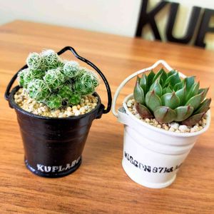 小さなブリキバケツをリメイク🎨ギンテマリとヤマトヒメが入居しました🌵居心地はどうかな?