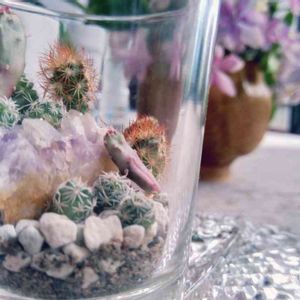 サボテンの子株を取ったので、乾燥するまでなんちゃってテラリウムにしてみました。 アメジストは春先に自分で見つけた安心の国産です(笑)