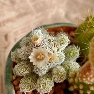 今日のお花🌼サボテンなんですね〜 うちの数少ないサボテンさん🌵 セレウスとギンテマリです♪ あ♡右端のポロッと落ちたギンテマリの子株からまた子株が(*´艸`)キャ