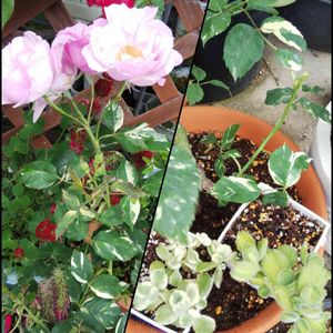 🏷錦の日初めて参加させていただきます(*ˊᗜˋ*)♡ 斑入り葉🌿薔薇ヘルシューレン🌹✨ 🧸熊童子錦、白斑♡と黄斑💛 お迎えして2年経ちますが成長してません😅