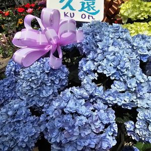 【2025店頭に並ぶ紫陽花シリーズ】 《久遠(くおん)》 塩原花園 こちら埼玉はようやく雨も止み 人々の動きも活発になりつつあるのではと 感じています。 これは… 塩原花園さんの新作でしょうか? 初めて見た紫陽花です。 花柄は《舞姫》のような絞り模様。 色は《水色の恋》の雰囲気もあれば《ちづる》の雰囲気もあり なんとも贅沢な仕上がり✨ ただ花びらが《テマリテマリ》のサイズ感に八重咲きとなってます。 一見すると、うるさく感じる集合体ですが よくよく見ると なんとも味わい深い至宝の紫陽花。 名前も素敵だし色も良い感じでした。 しいて言えば 鉢のサイズがデカい。 無論 母の日を意識しての仕上がりでしょうから 贈り物としては申し分ない感じでしょう。 この紫陽花は✨💗 絞り好きには ちょっとメモですね。
