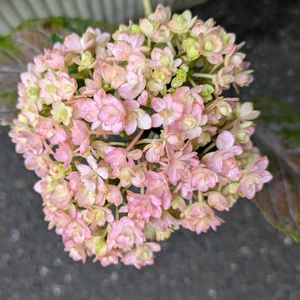 ①うちの紫陽花 ピンクになりかけ。 ②うちの紫陽花 まだ赤ちゃん 今年はこの2つしか花がついてない。冬の間日陰に移動したせいか?根詰まり?野菜用の大きな鉢なので、植え替えとなると大変。 ③山紫陽花頂きました。昨日バケツに浸けといたのに、今朝萎れてた。花瓶に挿すとき、なんと親切にキッチンペーパーを湿らせて、根元を巻き、ビニール袋に水まで入れてあった。袋に入れて紙で包みゴムを巻いてあったので夫がそのままバケツに入れたため、水を吸わないで切り口が乾いていた。斜めに切って十文字にカットしたら元気になった。 ④も一緒に。 ⑤コンボスブルスブルーコンパクタ 朝早くはすぼんでいる。日が上がると開いてくる。朝顔の仲間だけど日中も開いている。フェンスにはつたうけど巻き付くまではいかない。