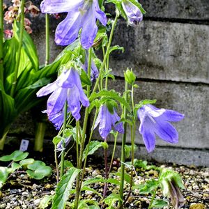 サラガミネキキョウ (皿ヶ峰桔梗) キキョウ科の 落葉多年草・・ チシマギキョウ(千島桔梗)と ホタルブクロ(蛍袋)を 交配して 作出された 山野草です・・ 強健ですが、あまり大きくは なりません 💦 我が家🏡にて 涼しげに 咲いています 😌 🏷愛しの紫💜 🏷金曜日の蕾たち