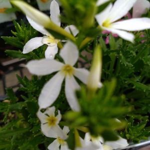 昨日のサントリーさんのYouTube見たらやっぱり欲しくなって…お迎えしちゃいました🤍 サンクエール苦手な私に育てられるのかな😅 サンクエールより大きな花弁 ちゃんと咲かせられたら見事だろうなぁ🥰 スカエボラだけど星型🌟って… 良く見ると普通の花弁もある〜🤣 次の休みに8号鉢に植えようかと思ってます え?6号でいけるかな?