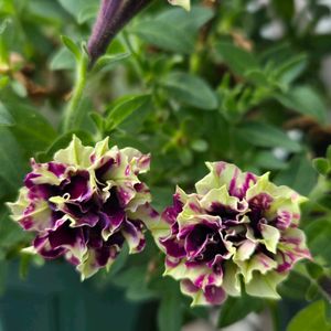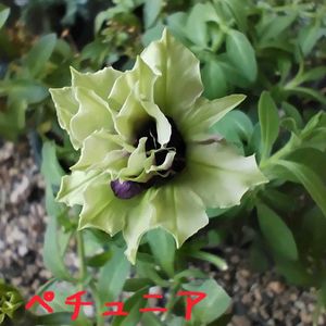 こんばんは🌟 ペチュニア・ピスターシュ ピスタチオ色の花弁にラズベリージャムのような色彩💚💜 おいしそ~う😋 今夜もいつの間にかウトウト… その後なかなか寝付けないけど うたた寝って気持ちいいのよね😅 おやすみなさい🌛