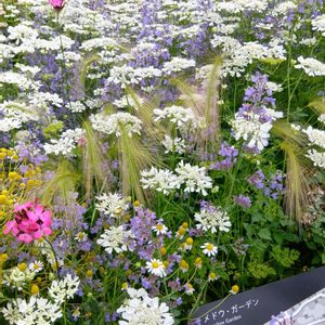 あやせローズガーデン 3投稿目 夫に運転させて🙊、8:40到着 無料と言えど、9:00開園 花友さんが来てるんじないかとキョロキョロ←👀→ でももう9時からは花壇しか見てませんでした🧐シンケン 薔薇の販売は園外で10:00から 好みの白緑のミニバラ見つけて、買っといて!と夫にベンチ入りしてもらいました🙇 ①大好きなカモミール 確か2種類ありましたよね これはジャーマン?ローマン?🤔 花友さんの投稿でハーブティーに使われるのはジャーマンカモミールと知りました🫖 紫は何? キャットミント? ガーデン内の紫はキャットミントと聞いたけど、紫いくつかあったから。。。🧐 ②オルレアがこんなに美しいと思ったのは初めて! このグラスは何? ジュパタム? ③3尺バーベナ バーベナ ボナリエンシス? 絶対にお迎えしたい! カベチョロ先生も大好きな花 ④🟣この紫は、リシマキア アトロプルプレア ボジョレー??? チンアナゴみたいでちょっと可愛い😁 🟡黄色はポピーのハナビシソウ 何か強烈に印象に残りました 写真ないけど、フロックス イザベリーナも印象に残ってます クリーム色というか、ベージュというか こんなにたくさん植えてある理由は何かな?とタグ写真撮って満足してしまいました💦 調べたら、珍しい色と花期の長さが魅力らしい✨ 欲しいなぁ🤤 ⑤ガラシャって河合さんの作出だったんだ〜 ネーミングが上手い方です👏 河合さん、綾瀬市さん! 素敵なガーデンをありがとうございます💕 こういう日本の風土に合う光景が見たかった! 見どころ満載、大満足のガーデンでした✨ また秋には訪れたい! その時は花友さんと待ち合わせしたい お近くのようだし😊イイナ 2027年の花博もこの辺でやるの? 今から楽しみでなりません