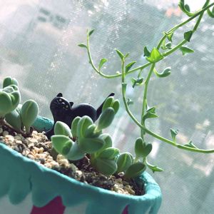 やっぱりトトの日°˖✧◝(⁰▿⁰)◜✧˖° カットして根っこ出たお魚さんを奥のリメ缶にさしてみました⑅◡̈*根付くといいな🎶
