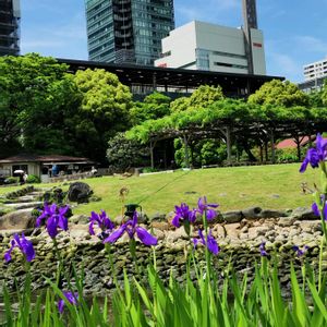旧芝離宮恩賜庭園 花菖蒲と蛇苺の花💠😓 可愛い顔してワイルドですね👌