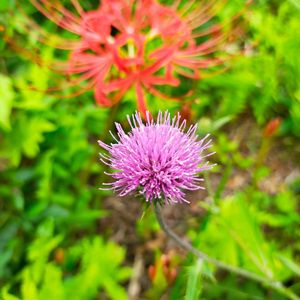 里山を歩いてみれば… タイアザミ(トネアザミ)×2 カラスノゴマ(烏の胡麻)×2 ヒガンバナ(彼岸花) 大薊 ⚫︎⚪︎⚪︎⚪︎⚪︎