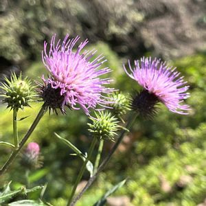 今日のお花 アザミ ❶❷❸ タイアザミ 別名:トネアザミ 秋に咲くアザミ 関東ではよく見られる 大きいアザミという意味 24/10/13目黒自然教育園にて ❹アメリカオニアザミ 以前は近所の公園脇の道端で大株のアザミを見かけましたが, 今は鋭い棘による子供達の怪我が心配されて早めに刈り取られます。 25/06/09近所の空き地にて