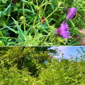 ピンクのタイアザミの花が綺麗です! 下のピンクの花はヌスビトハギです💕
