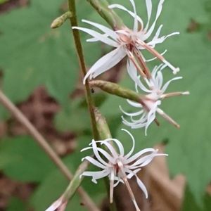 奥紅葉白熊。オクモミジハグマは、西日本に多いモミジハグマと比べて、北部に生育し、葉っぱの鋸歯の切れ込みがより浅く小さいとあり、同定した。ちりちりの花びらは愛嬌があり、ほの暗く森閑とした林床でみると、ひとりはしゃいでいるような感じさえする。 白熊をシロクマではなく、ハグマと読み、チベットなどにいるヤクの尾の毛のこと。この毛は僧侶が持っている獣毛を束ねた払子(ほっす)などに使われている。茎が長く、払子のイメージがあり、そういう辺境の異国情趣を漂わす。頭を垂れて、願を懸けたくなるのも人徳ならぬ、「花徳」であろう。
