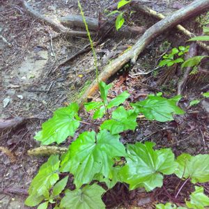 山の木陰に咲いていました。 初👀です。 葉の形からオクモミジハグマ(奥紅葉白熊)かなぁ…?🤔 違っていたら教えてください🙇 キク科 モミジハグマ属 花期 8〜10月