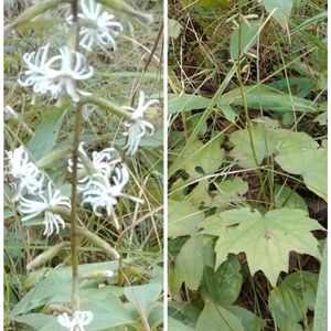 オクモミジハグマ(奥紅葉白熊) *キク科モミジハグマ属 花期は8〜10月 東北地方南部〜九州北部の山地の林内の木陰などに生育する多年草! 高さは40〜80cm 葉は茎の中部に輪生状に4〜7枚付き形が紅葉に似る。 茎先に付く頭花は穂状に3個づつの小花を多数 横向きに付ける!(風車状によじれる) 白熊とは、ヤクの尾の毛の事で槍等の飾りとされたもの! 白熊の名前が付くのは キッコウハグマ.ホソバハグマ.カシワバハグマ. エンシュウハグ.クルマバハグマ等! 9月22日撮影