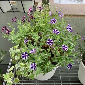 ペチュニアヨコハマ パープル 10号鉢の寄せ植え 無雑作に広がっています😊