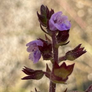 犬香需 イヌコウジュ シソ科 イヌコウジュ属 分布 北海道 本州 四国 九州 沖縄 花期 9〜10月 ・葉 やや厚く、 卵形-長卵形で6-13の低鋸歯となる。 ・花 花冠 淡紫色 多数つけ る 萼 裂片の先端が尖る ・乾いた山野や道端に生育す る。 エノコログサ、カヤツリグサなどで覆われた空き地の隙間に生えていました。
