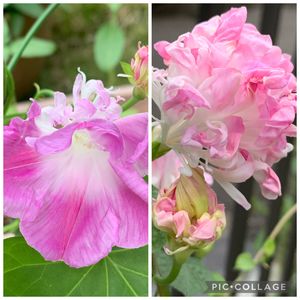 しつこいですよね😅 でも、気にっちゃって😅 ➡️が、通常の咲き方の朝顔スプリットペダル。下に見えるのはつぼみです。 ⬅️は先祖返りしたのか、はたまた破れないで咲いてしまったのか😅 こうなると、毎日どんな咲き方するのか楽しみで😆😆😆 朝、家を出る時にはまだ咲いてないから、毎日見れないー😭😭😭