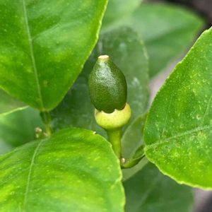 これは‼️キラーン✨✨✨赤ちゃんレモンちゃんでは⁉️🍋 こんなにちっちゃい木に、ひとつだけなってるー💕💕💕😆 お花も三つしか咲かなかったのに😆 ありがとー💗💗💗